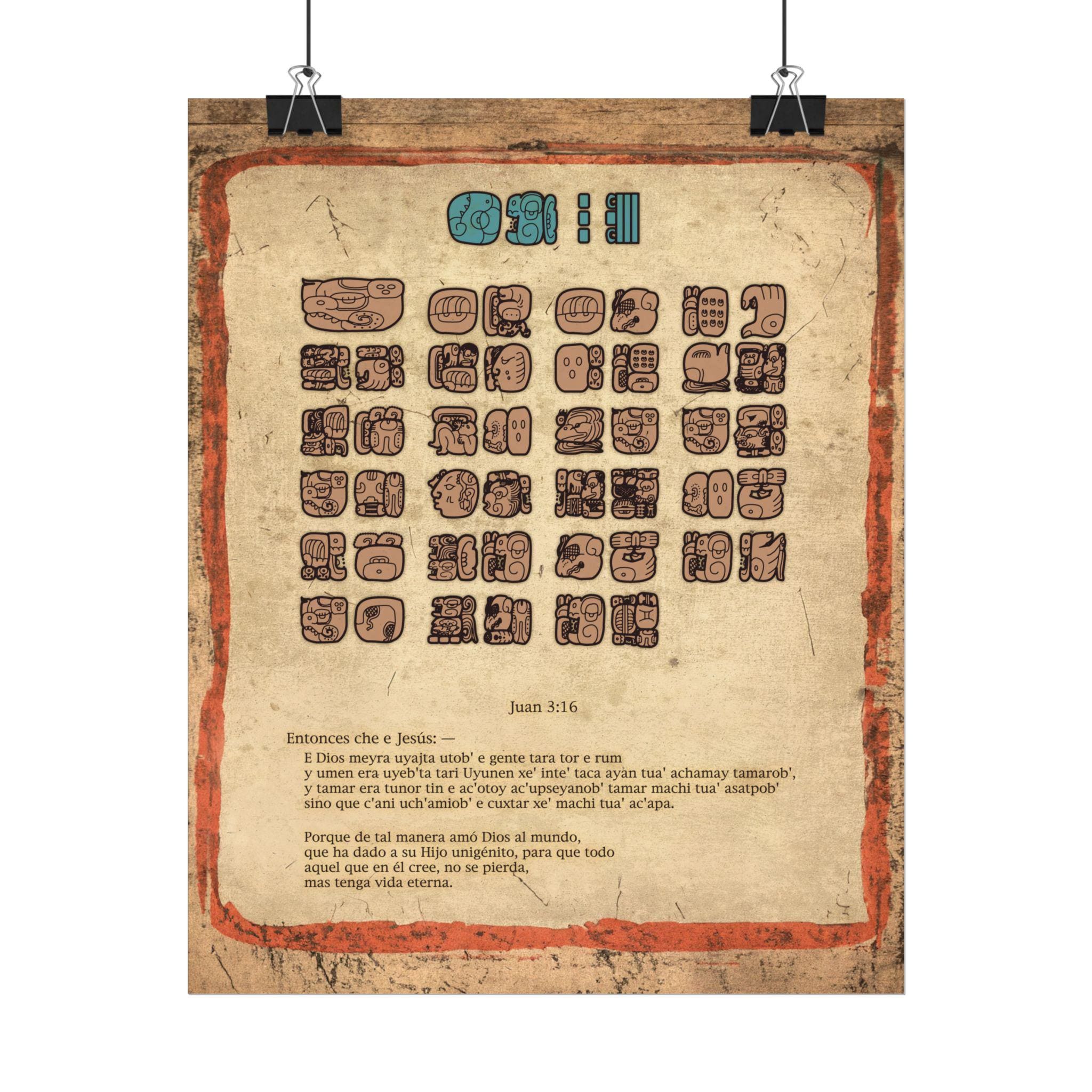 What if you can write modern Mayan languages of Central America using their ancient writing? That's precisely what I did here, using Mayan glyphs to write an official bible translated verse of John 3:16 of the modern language of Ch'orti' still spoken in Guatemala, Honduras and El Salvador. Of course, I had to modify the writing rules a bit in order to make it work (I will share more in a blog, here on this website soon on how exactly I went about it), but it was mostly a smooth transition! Ch'orti' is the direct linguistic descendant of Classical Mayan, known as Ch'olti'.